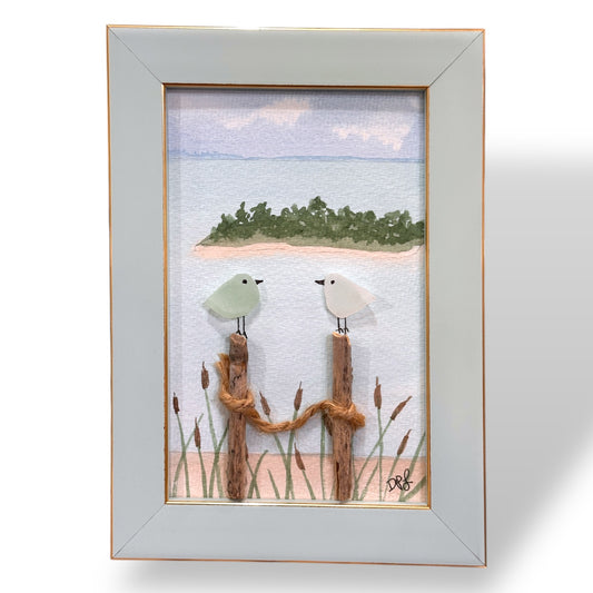 Charles Island Milford Connecticut Sea Glass Birds on Watercolor Print - Framed - 7-1/2-in