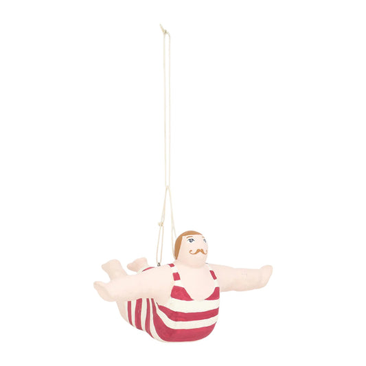 Vintage Male Bather Hanging Figurine with Red & White Stripes - 6-in