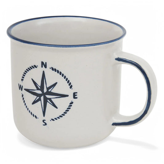 Nautical Compass Rose Ceramic Mug - Navy On White