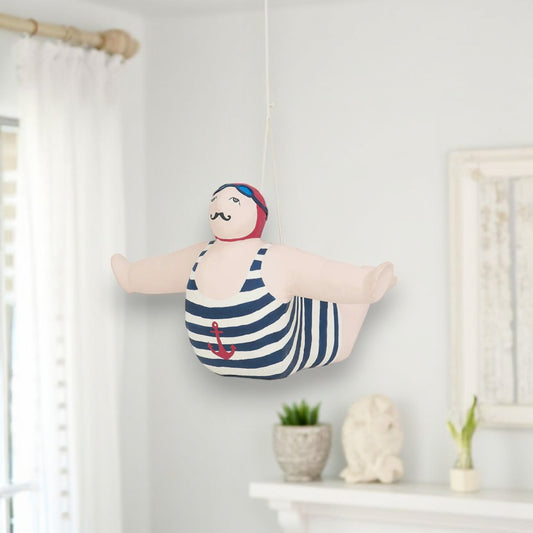 Vintage Male Bather Hanging Figurine with Blue & White Stripes - 12-in