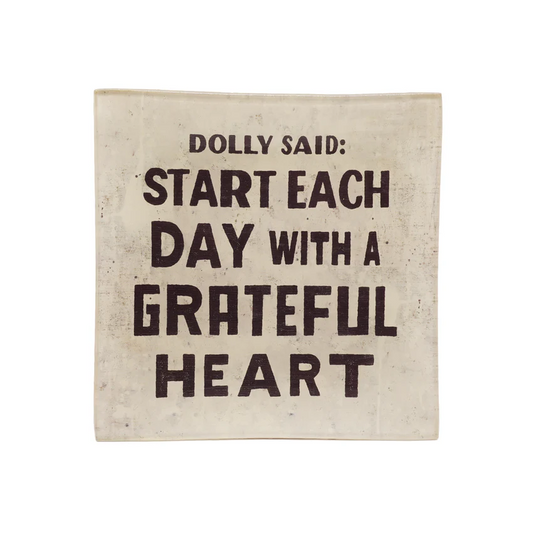 Dolly Said: Start Each Day with a Grateful Heart - Small Square Decoupage Plate - 6-in