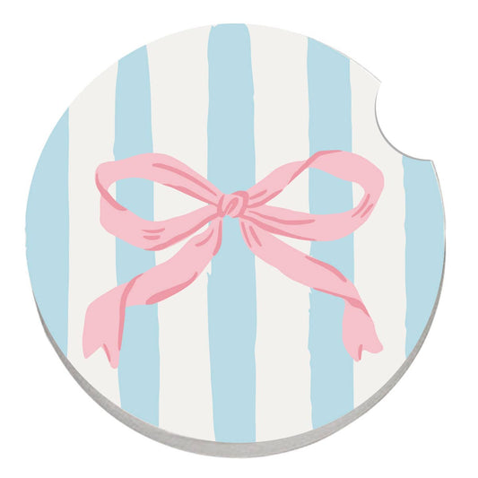 Car Coasters - Pink Bow Blue Stripe - Set of 2