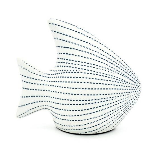 White with Blue Striped Porcelain Angel Fish - 4"W x 3-1/2"H