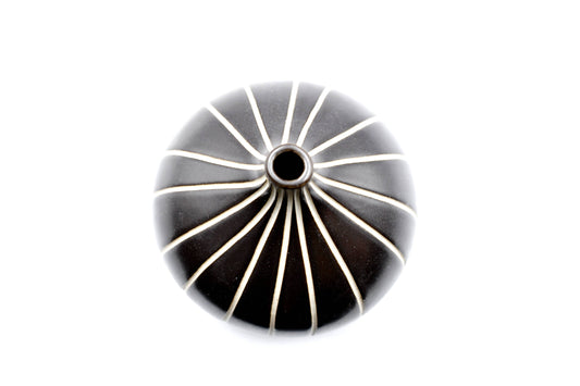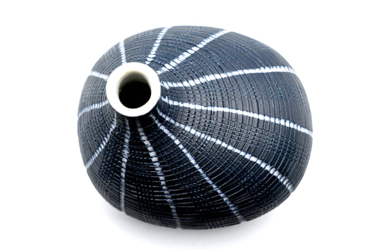 Tiny Congo - Handcrafted Porcelain Bud Vase - Black with White Stripes - 2.5 x 2.5 x 2.6 in