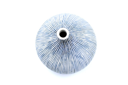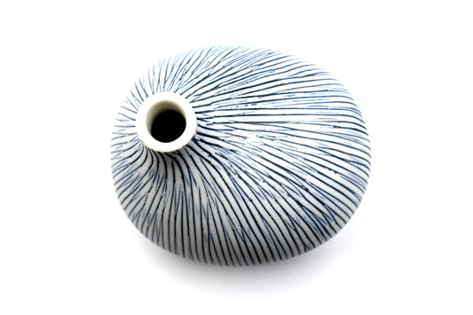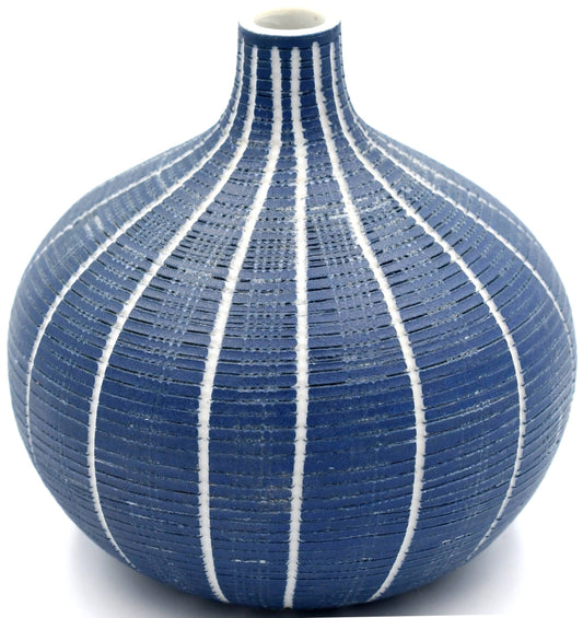 Mini Omo - Handcrafted Porcelain Bud Vase - Navy with White Stripes - 2.7 x 2 x 2.8 in