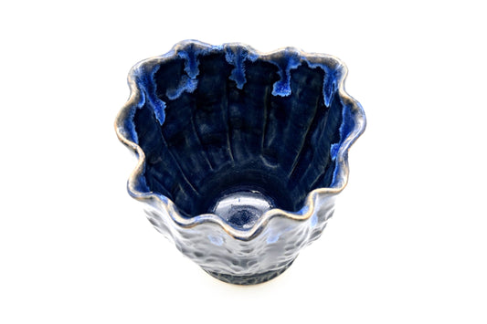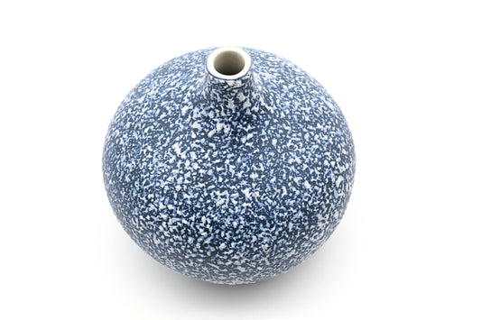 Tiny Congo - Handcrafted Porcelain Bud Vase - Navy and White Mottled - 2.5 x 2.5 x 2.6 in