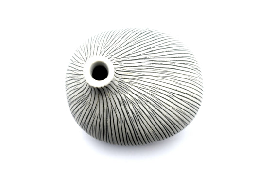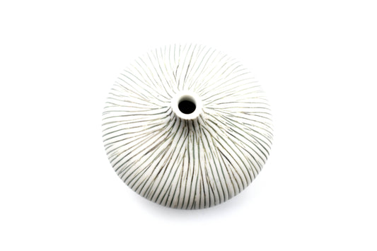 Tiny Congo - Handcrafted Porcelain Bud Vase - White with Gray Stripes - 2.5 x 2.5 x 2.6 in