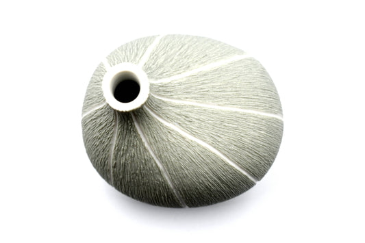 Mini Omo - Handcrafted Porcelain Bud Vase - Gray with White Stripes - 2.7 x 2 x 2.8 in