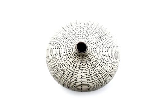 Tiny Congo - Handcrafted Porcelain Bud Vase - White with Gray Dotted Lines - 2.5 x 2.5 x 2.6 in