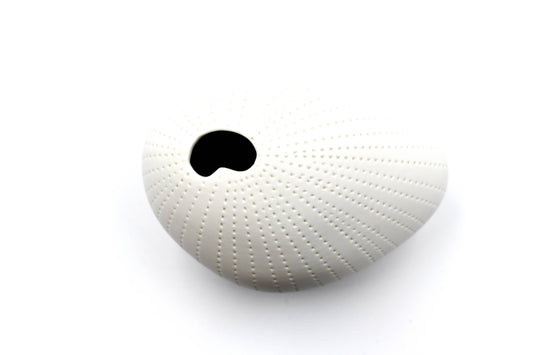 Mini Pebble - Handcrafted Porcelain Bud Vase - White with Grey Dotted Lines - 3.4 x 2.6 x 2.4 in