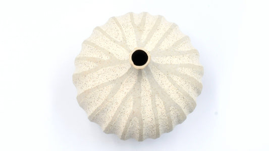 Mini Pebble - Handcrafted Porcelain Bud Vase - Taupe with White Stripes - 3.4 x 2.6 x 2.4 in