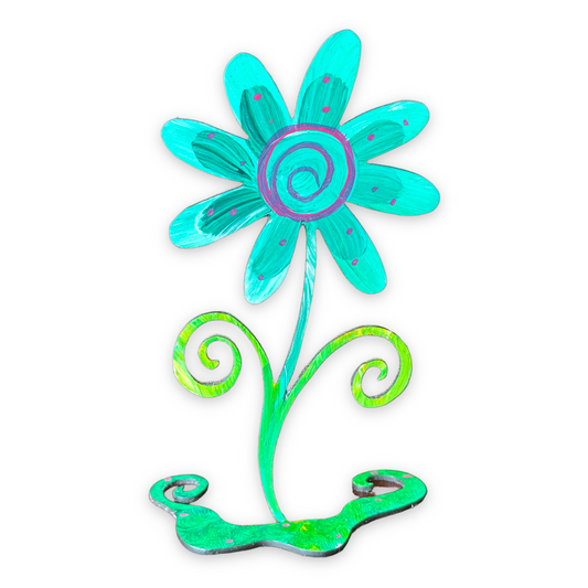 Flower Aquamarine - Hand Painted Freestanding Metal Figurine - 5-in