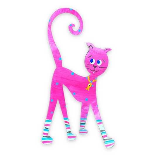 Cat With Socks - Hand Painted Freestanding Metal Figurine