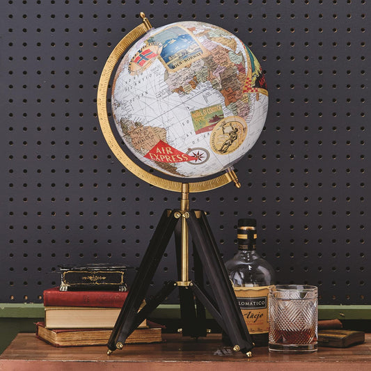 Around The World Decorative Vintage Globe on Wood and Metal Tripod - 22-in