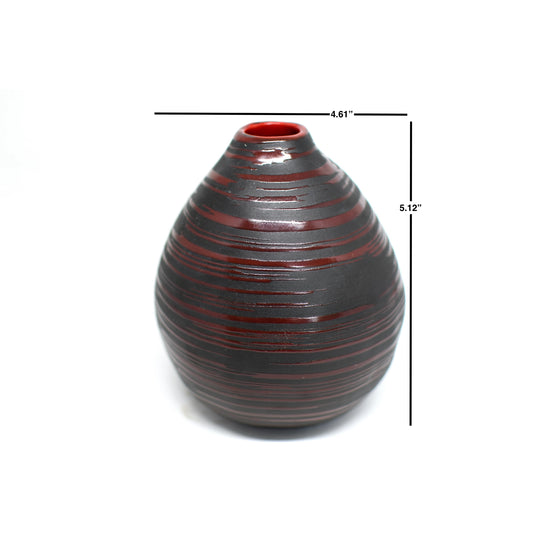 Porcelain Bud Vase - Black With Red Accents - 4.61"W x 5.12"H