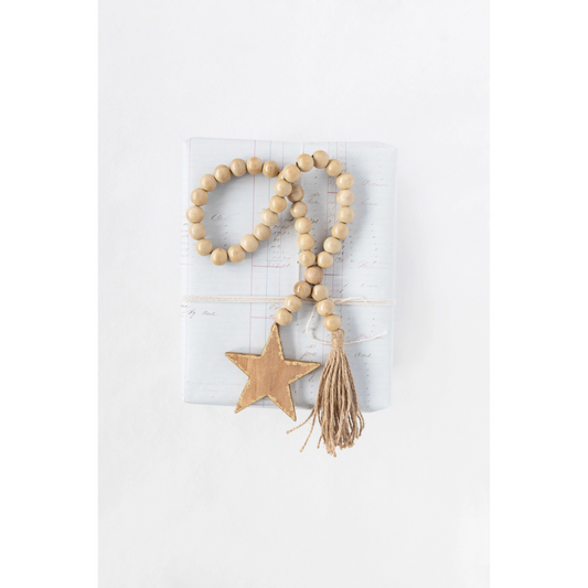 Wood Beads with Star Icon and Jute Tassel - 17"