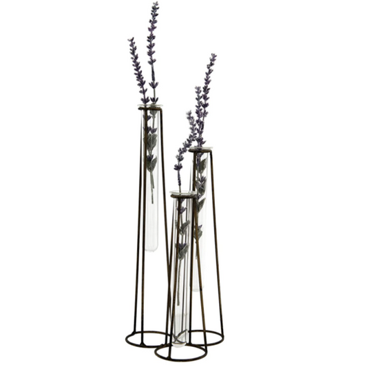 Three Tier Antique Gold Bud Vase with Glass Test Tubes - 11-1/4-in.