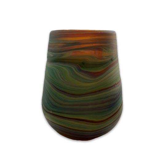 Hand-Blown Frosted Art Glass Vase with Multi Color Stripe - 8-in