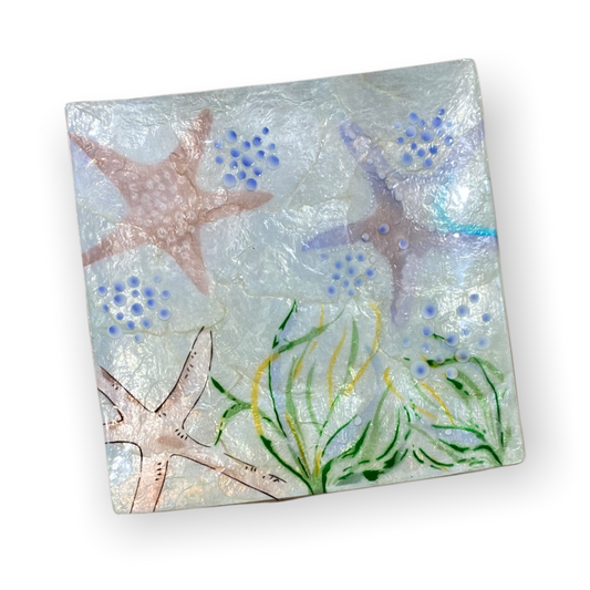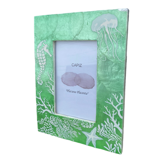 Seahorse Jellyfish Starfish Sea Life Painted Capiz Photo Frame - 9-in (for 4x6 photo)