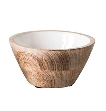 Round Enameled Mango Wood Bowl - 2 Colors - 5-in
