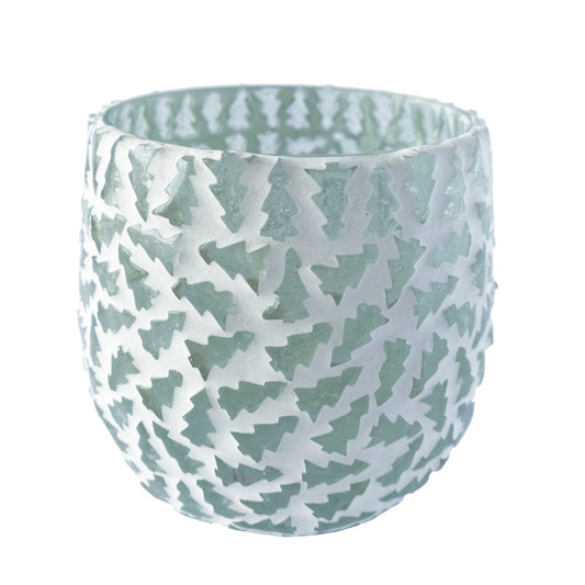 Glass Tealight Votive Holder with Trees - 4-in