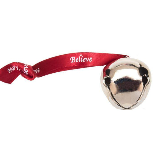 Bevin Bells - Silver Believe Sleigh Jingle Bell - Nickel Plated With Red Ribbon