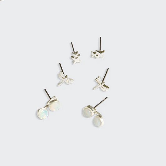 Stud Trio Ear Jacket Set - Dragonfly/Opalite/Silver