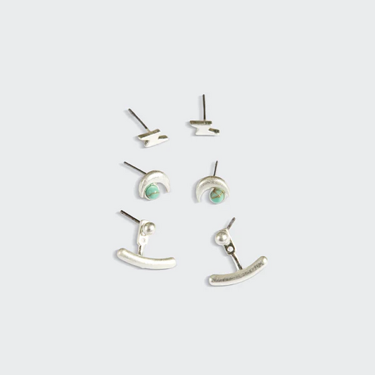 Stud Trio Ear Jacket Set - Moon/Turquoise/Silver