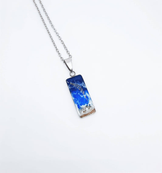 Handcrafted Resin Ocean Beach Wave Rectangle Necklace