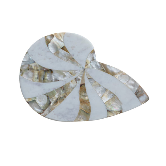 Marble Nautilus Shaped Cheese/Serving Board with Mother of Pearl Inlay - 12-in