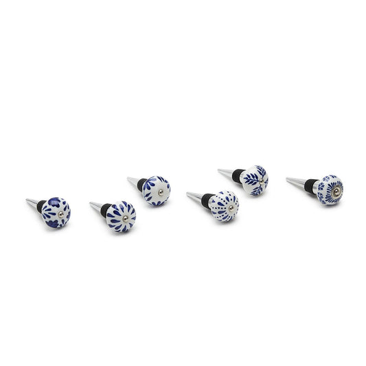 Hand Painted Blue and White Ceramic Wine Bottle Stopper