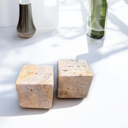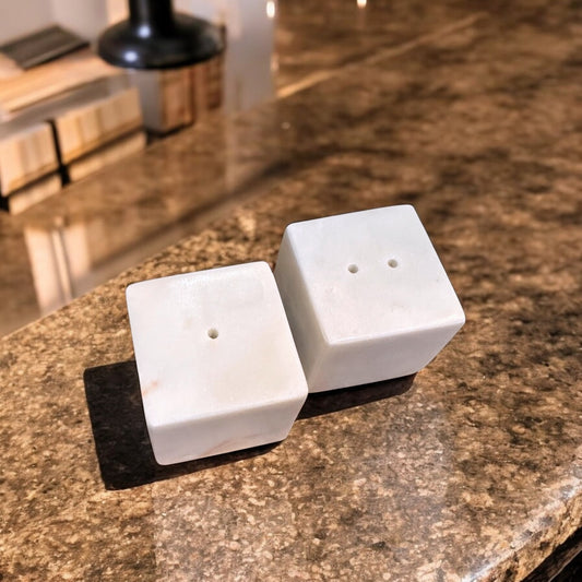 Taupe Marble Cube Salt and Pepper Shaker Set