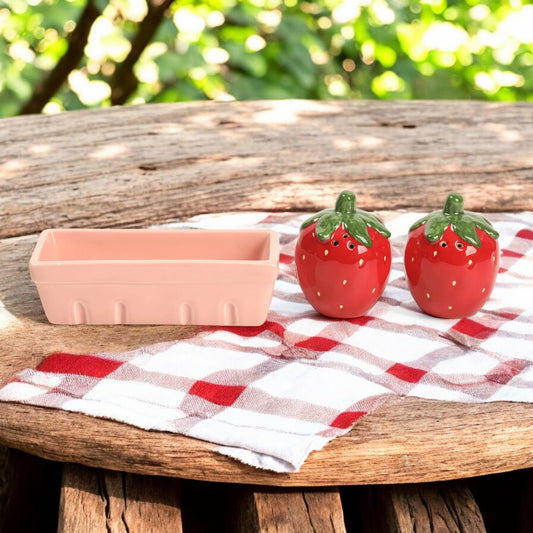 Strawberry Salt and Pepper Shakers with Basket Tray