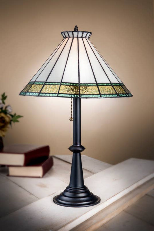 Green Stained Glass Tiffany Lamp - 25-1/4-in
