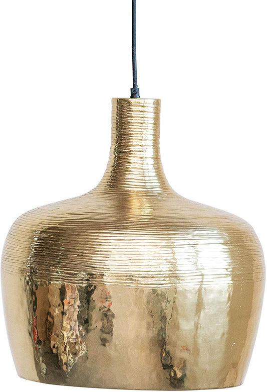 Round Metal Brass Finish Embossed Pendant Lamp - 12-1/2-in