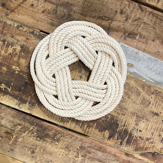 Nautical Sailor Knot Woven Rope Round Cotton Trivet 10-in - White