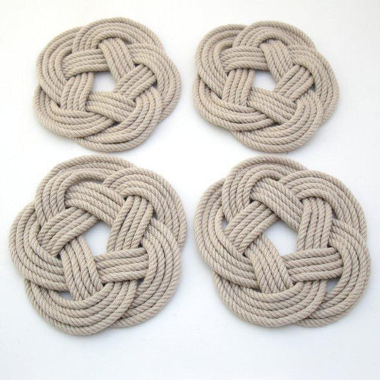 Turks Head Sailor Knot Woven Coasters - Set of 4 - Tan
