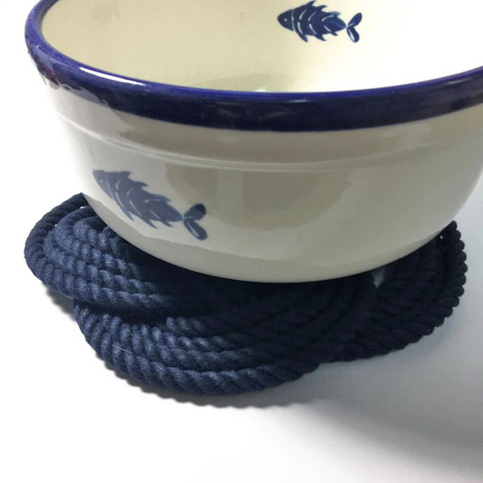 Nautical Sailor Knot Woven Rope Round Cotton Trivet 10-in - Navy