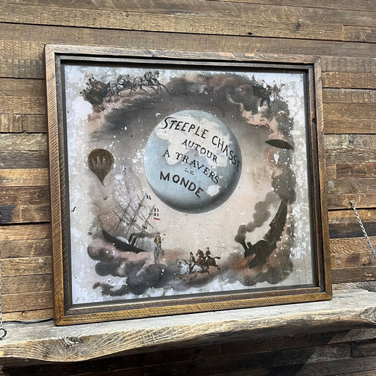 Lighted Vintage Steeple Chase Board Game - Framed Brown Shadowbox - 25-in