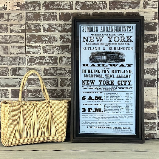 Lighted Vintage Summer Arrangements New York, Rutland And Burlington Railroad Advert Circa 1857 Framed Dark Brown Shadowbox - 29-1/2-in