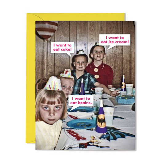 I Want To Eat Cake! I Want To Eat Ice Cream! I Want To Eat Brains - Birthday Greeting Card