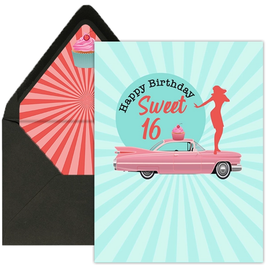 Happy Birthday Sweet 16 Mod Dancer - Retro Birthday Greeting Card