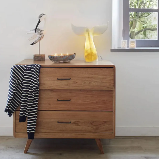Small White Terracotta Lamp With Blue Anchor - 9-in