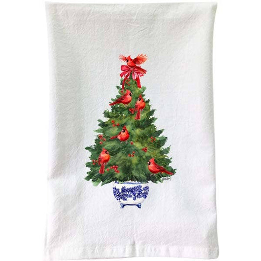 Blue & White Oyster Christmas Tree Flour Sack Towel