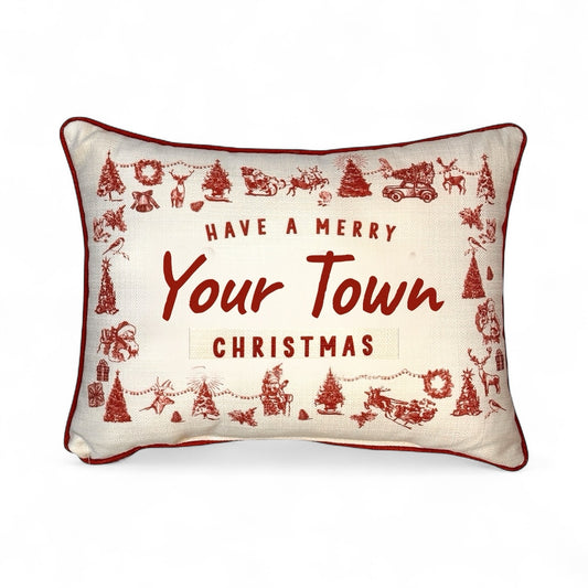 CUSTOM Have a Merry Christmas YOUR TOWN/STATE - Hometown Pillow - Scarlet Piping - 19-in