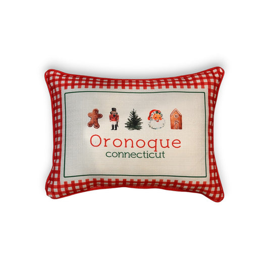 Gingham Christmas Hometown Pillow - Oronoque Connecticut - Red Piping - 19-in