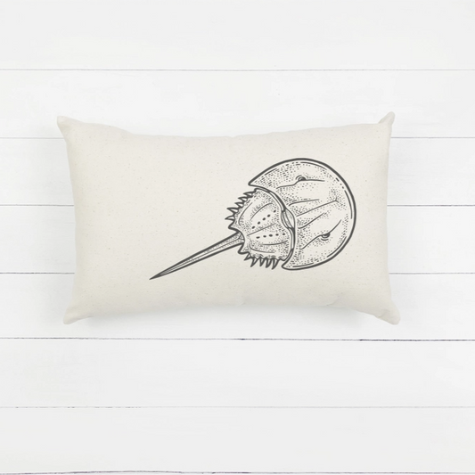 Horseshoe Crab - Natural Canvas Coastal Lumbar Pillow - 12-in x 20-in