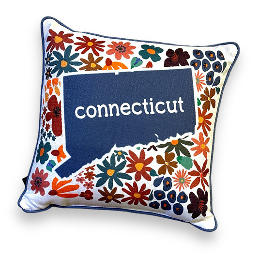 Connecticut - Fall Floral Square Pillow with Laurel Piping - 16-in