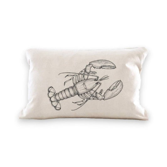 Lobster - Natural Canvas Coastal Lumbar Pillow - 12-in x 20-in
