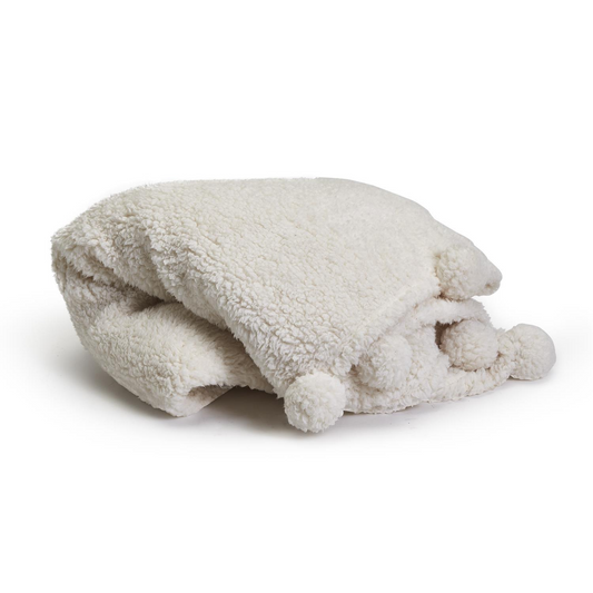 Luxury Cream and Tan Faux Fur Ribbed Throw Blanket- 60-in